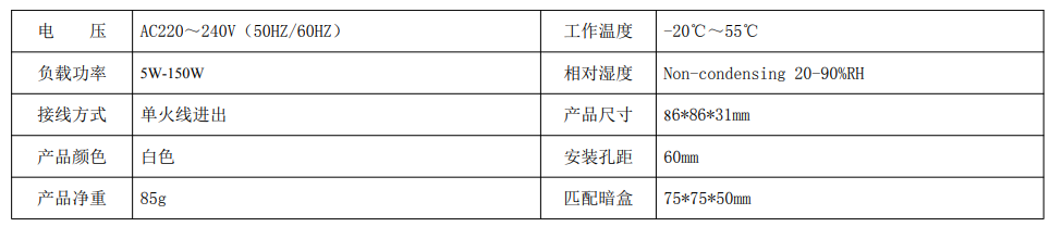6、接线方式:单火线接入。任何场合,均无需凿墙打孔、重新布线,同普通机械开关接线方式一样,可直接替代现有的开关,安装方便。