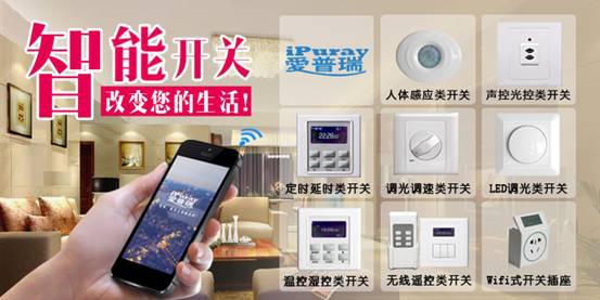爱普瑞智能开关涵盖人体感应开关、光控声控开关、温控湿空开关、定时延时开关、调光调速开关、遥控开关、LED专业调光开关及其他专业家电智能开关。这些开关在智能照明领域的全面使用,无疑引发了人类第二次照明革命。