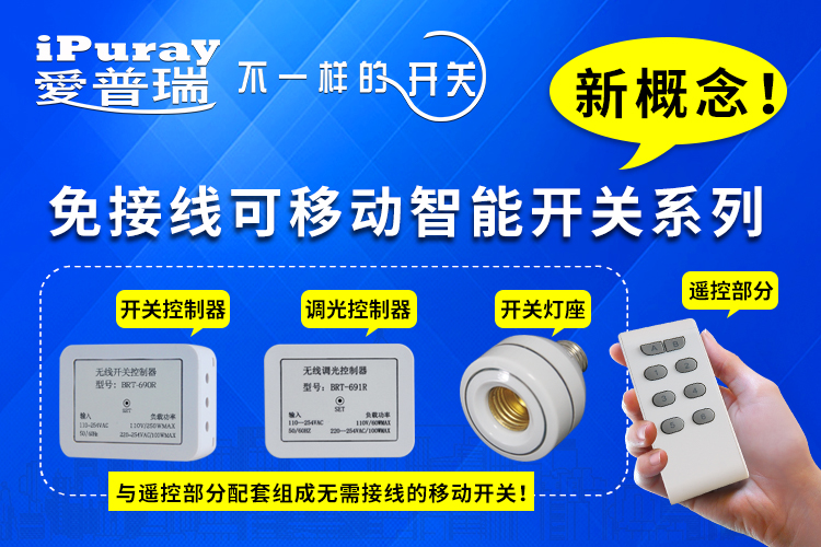 遥控开关一般有两种遥控方式:一种是利用墙壁开关+遥控器的搭配来实现双重控制;另一种则是利用手机APP远程遥控开关。以上两种遥控开关各具特色,爱普瑞也有不少同类产品,但都不如爱普瑞最新推出的免接线可移动智能开关系列更具特色!