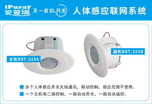 爱普瑞iPuray智能开关作为这个行业的领先者,自2007年即开始征战欧美市场,对于独立感应智能开关这个缺陷,经过1年多的努力,研发团队终于解决了这个难题,不仅独家推出了感应距离可调节的感应智能开关,并于2017年6月将无限距离的感应开关爱普瑞BRT-325A和BRT-325B推向了市场,该开关不仅解决了感应距离有限的限制,同时还具有二路不同的控制方式,一路以通断的方式解决了灯光照明等普通的负载,一路以遥控的方式解决了空调、音响、电视等所有带红外遥控器的设备。这种方式不仅有效的控制了这类负载的智能开关问题,而且完全按照其设计原理和控制方式,不会因为突然断电对设备造成损伤,也不会因为断电对二次开启造成障碍。因此一经推出市场,立刻弥补了传统感应智能开关缺陷,受到欧美、中东、日本等国家的青睐,也为国内大型商业综合体、各大高等院校以及医药行业提供了有效的感应智能控制方案。尤其是在各种贵重设备防盗领域,广受欢迎。