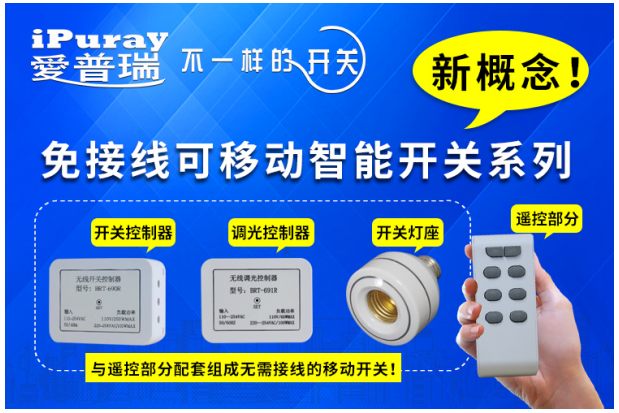 此外,爱普瑞智能开关最新推出的免接线移动开关系列更是智能开关市场中一大突破,产品设计更符合用户“刚需”。该系列彻底免除新建住宅开关线路的设计和预留布线,大大节约了成本。对于旧房改造,二次装修,也不再需要重新凿墙开孔,布置开关,可直接将该产品接入负载旁,即可在约20米范围内随意开关和调节亮度。该系列智能开关可以实现一个移动开关控制多个负载;也可由多达20个移动开关分别控制一个负载,实现多联多控,对于同一个负载,可由多人在不同的地方分别管理控制。在卧室里控制客厅的灯;在书房控制客厅的灯;在玄关控制客厅的灯;墙面操作、手持移动操作,随心控制,方便省事!可广泛应用于家居、宾馆、别墅等场所。