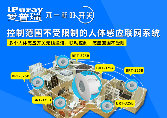 鉴于此,爱普瑞iPuray智能终端专家首次提出人体感应联网概念,将多个感应智能开关通过无线通讯的方式,相互关联,互相传输信息,任何一个出入口有人进入,均可控制相应的照明灯具或其他负载自动开启,直至所有的人都离开后,整个空间不再有人再自动关闭。从而实现近千平方米的超大范围人体感应控制效果,方便、有效且节能。