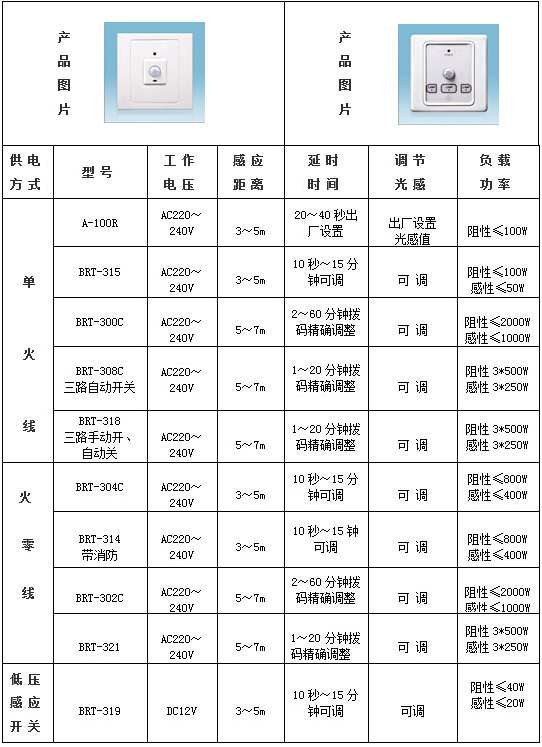 爱普瑞墙壁式人体感应开关一览表