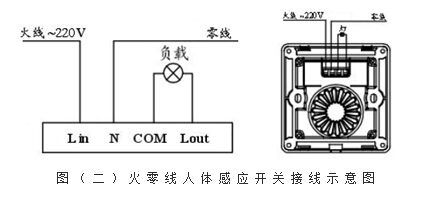 1.2火零线人体感应开关:火零线是指进入开关中的输入线有两根,一根火线,一根零线,直接连接到开关。开关中的电路控制火线的通断后,输出一火线去连接负载,输入零线与输出零线为同一根线,因此可以合并,但有时为了接线方便也可分开,表面上看两进两出是四线,但实质是三线,因此也俗称三线制。该类开关仅适用于安装现场布有零线的场合,相对于单火线开关性价比更高。
