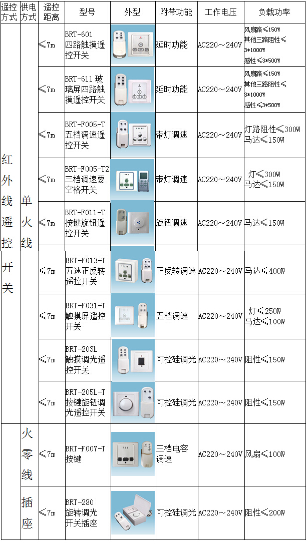 产品型号:A-203L,BRT-205L-T,BRT-601,BRT-611,BRT-F005-T,BRT-F005-T2,BRT-F011-T, BRT-F013-T。