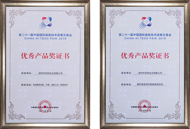 爱普瑞智能家居系统荣誉证书