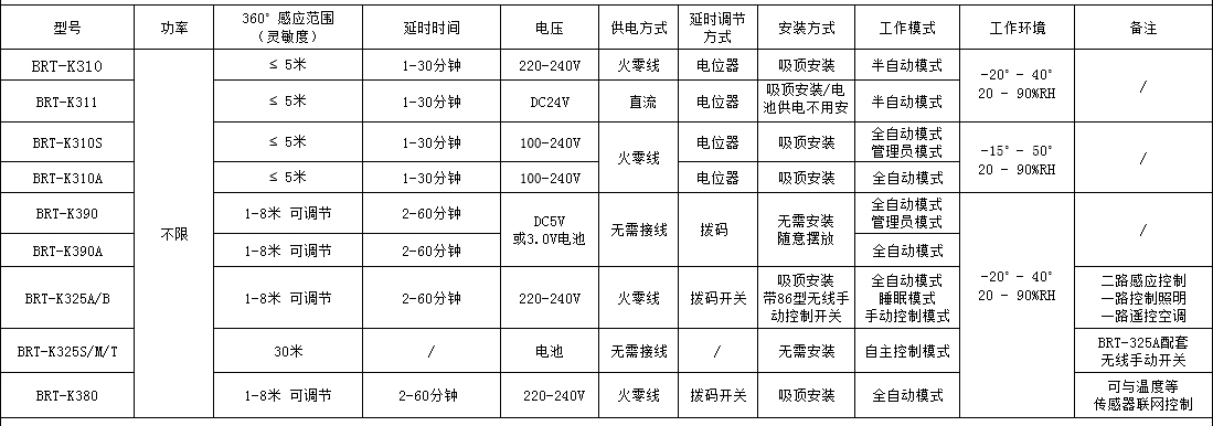 空调系列节能开关一览表